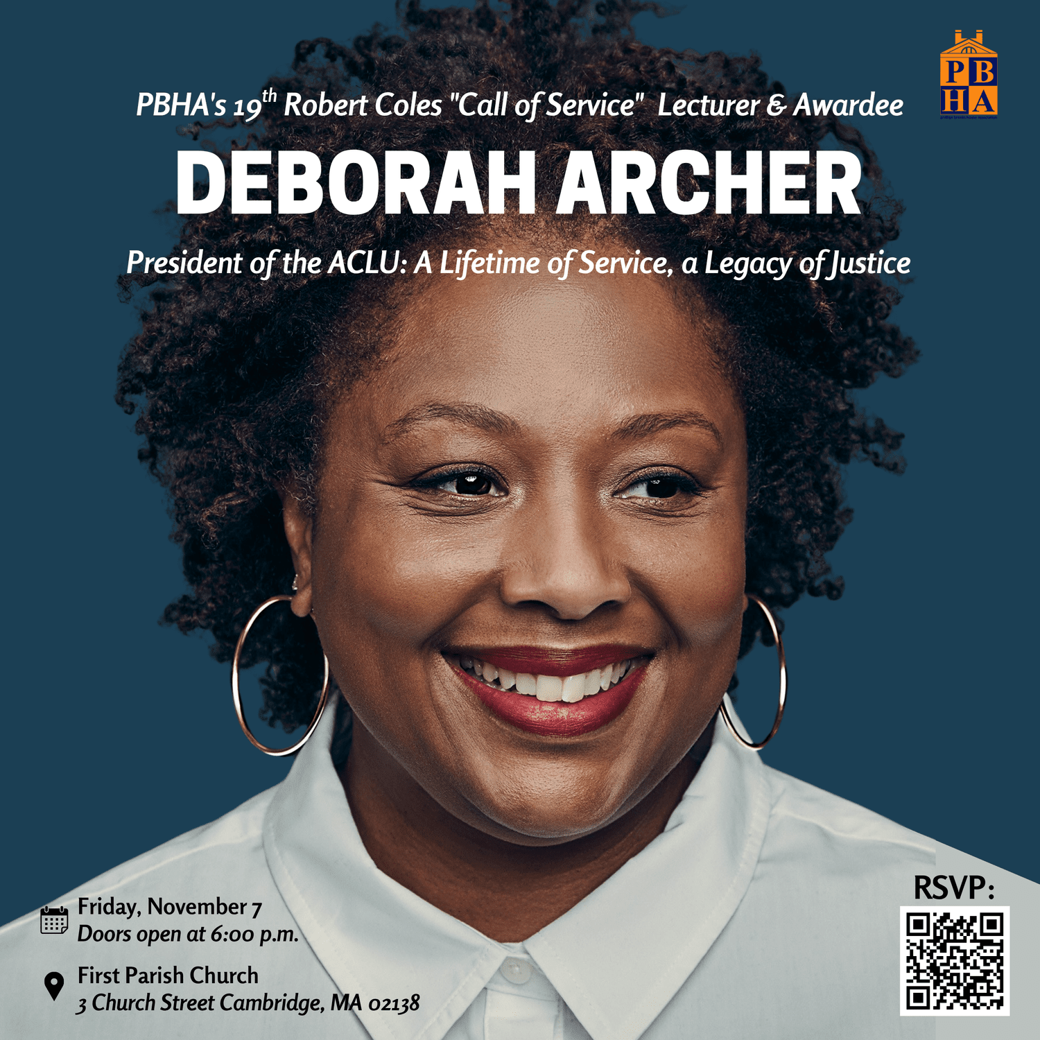 On Friday, November 7th, 2025, PBHA was delighted to honor Deborah Archer, president of the ACLU and NYU law professor, at the 19th Annual Robert Coles “Call of Service” Lecture & Award. Maria Dominguez Gray and Nana Safo-Mensa opened the event, followed by Dr. Julie Reuben and Carol Rose, who presented Archer with the award and introduced her lecture. Archer then joined Alex Fernand and Melanie Garcia for a conversation on “answering the call.” The program concluded with VaLonda Harris and Gabriela Gandara inviting attendees to Alumni Weekend and sharing a message from Outstanding Alumna Anurima Bhargava.