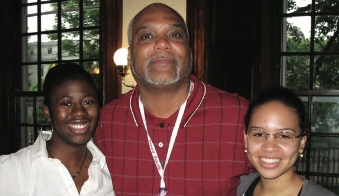 Photo from 2008, where the directors of the Franklin I-O Summer Program, Nene Igietseme ’09 and Sarah Lockridge-Steckel ’09, and the founder of the Franklin After School Program, Michael Pope ’82, met for a rich discussion on neighborhood-based programming.